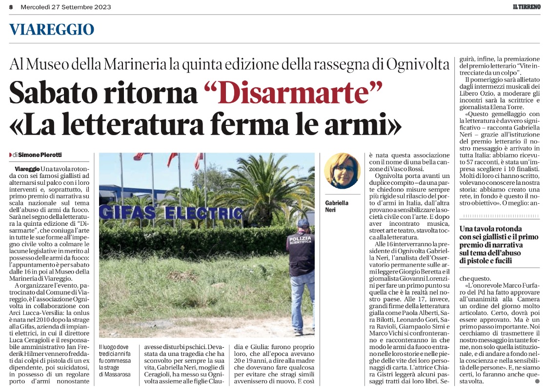 - Sabato ritorna Disarmarte, “La letteratura ferma le armi” – Il Tirreno, 27 settembre 2023